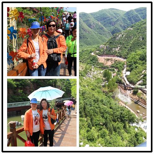 車間的幾個(gè)俏姑娘在瀑布前盡情地戲水,水花濺落在她們青春的臉上,無(wú)比生動(dòng)。京華導(dǎo)游的小旗在陽(yáng)光下分外醒目,我們團(tuán)隊(duì)緊跟小旗緩步前行,桔黃色的廠服將大熊山裝點(diǎn)得異常美麗。踩著輕風(fēng)的腳印,牽著初夏的爛漫,美人江山盡在時(shí)光中蹁躚。