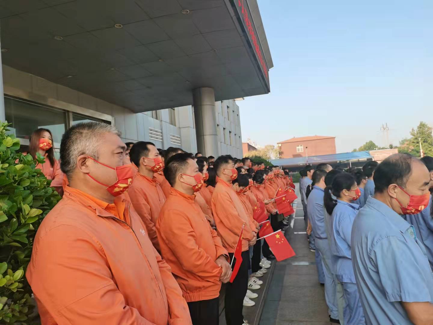 廠區(qū)被集團(tuán)辦公室人員用心布置,祝福條幅,處處飄揚(yáng)的小紅旗,員工們帶著奧運(yùn)冠軍同款的紅口罩,用一張張熱情洋溢的笑臉和熱血沸騰的愛國心,慶祝祖國母親的生日。