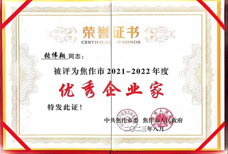 8月22日下午,在焦作市堅(jiān)定“兩個(gè)依靠”勇闖高質(zhì)量發(fā)展新路推進(jìn)會(huì)上,對(duì)2021—2022年度“焦作市杰出企業(yè)家”、“焦作市行業(yè)領(lǐng)軍企業(yè)家”、“焦作市優(yōu)秀企業(yè)家”進(jìn)行了隆重表彰。