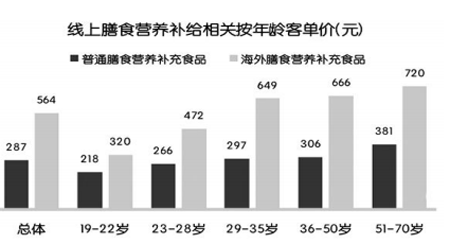 根據(jù)《研究》顯示,29—70歲的中老年人購買的保健品客單價均在平均客單價之上,其中,海外版的平均客單價是普通版的2倍,足見消費實力。此外,他們購買海外版的頻次也相對更高。
